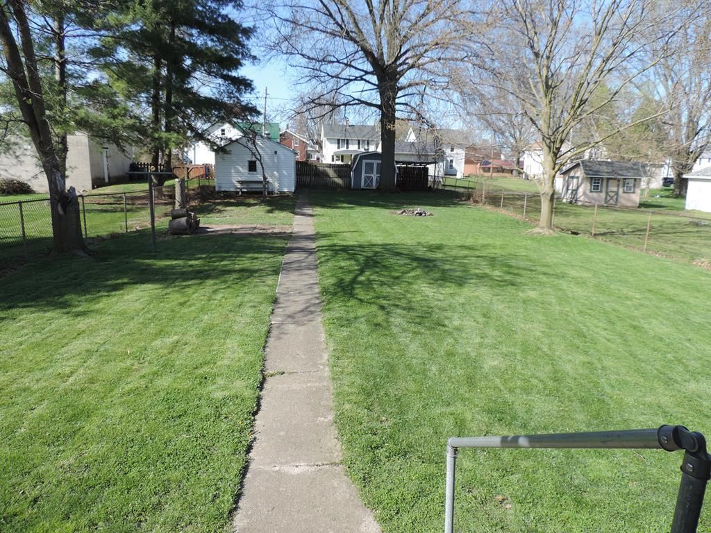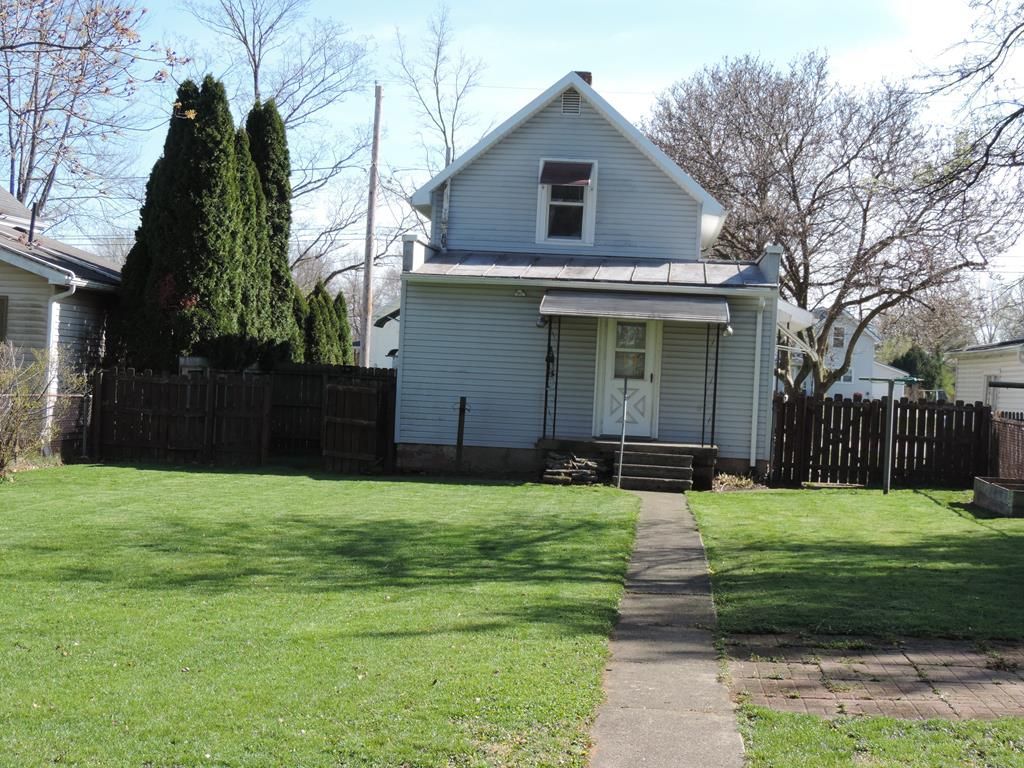 Welcome to this charming 2 bedroom, 1 bath cape that blends modern updates with cozy charm! Step inside to discover a beautifully updated kitchen with oak cabinets and Corian countertops. The large main level bath has updated fixtures and a blue tooth exhaust fan. Enjoy the beautiful outdoor space with a large fenced in rear yard and, for the dog lovers, there is a privacy fenced area in the side yard with a doggy door access. The spacious front covered porch is the perfect place to enjoy your morning coffee! The one car detached garage is accessed by the rear alley with the garage man door leading to the fenced in back yard. 16x10 shed with electric and 10x10 lean to. Newer furnace, AC and water heater in 2019, gutters and soffits recently replaced. Within a block of Veterans Park and convenient to downtown shopping. Highest and Best Offers due by 7pm est on Monday 04/20/2026. Listing agent is related to seller.